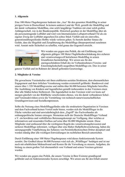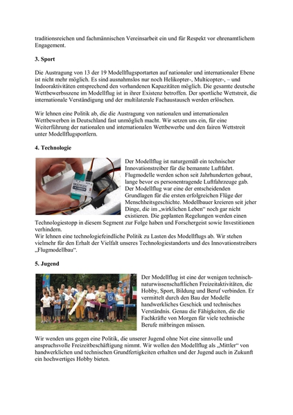 Modellfliegen und Modellbau sind eine anspruchsvolle und interessante Freizeitbeschäftigung der viele tausend Menschen in Deutschland mit Leidenschaft nachgehen und auch in Zukunft nachgehen wollen!